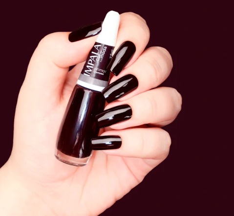 Utilizando o pincél do vidrinho, passe uma camada sobre toda unha, começando pelas laterais e preenchendo o meio. Espere secar e passe uma segunda camada. Limpe as bordas externas com o auxilio de um palito, algodão e acetona.
